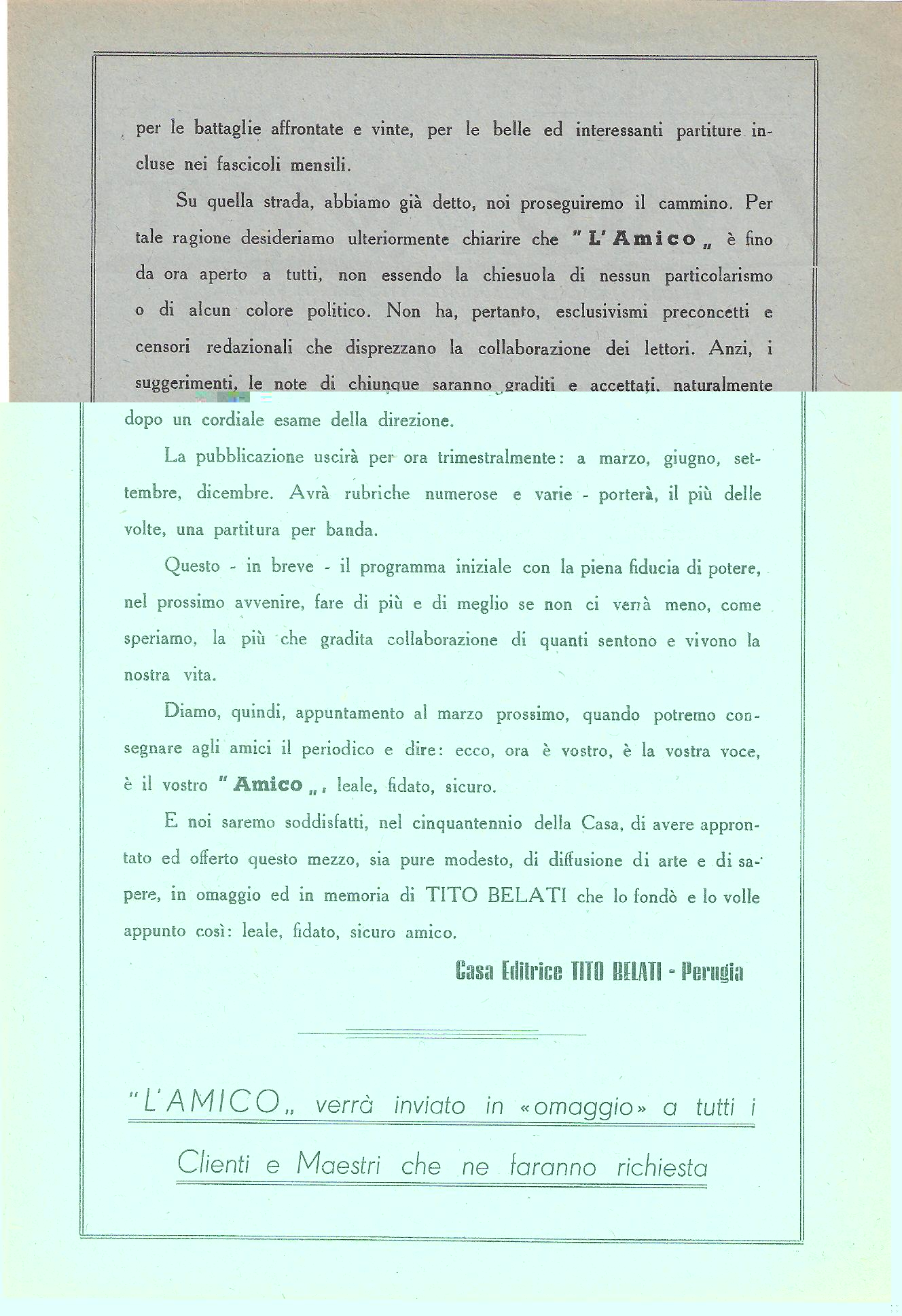 Tito Belati, ispiratore de L'Amico dei Musicisti